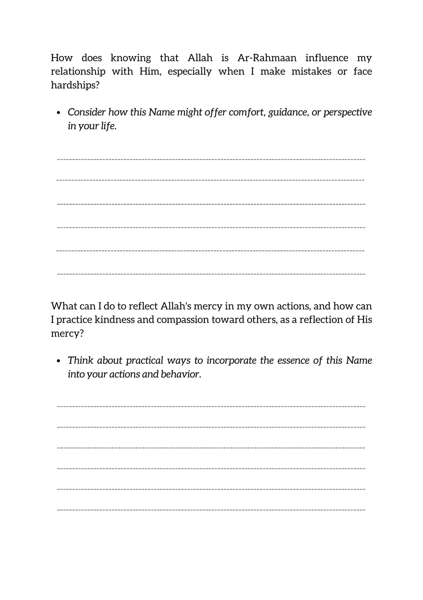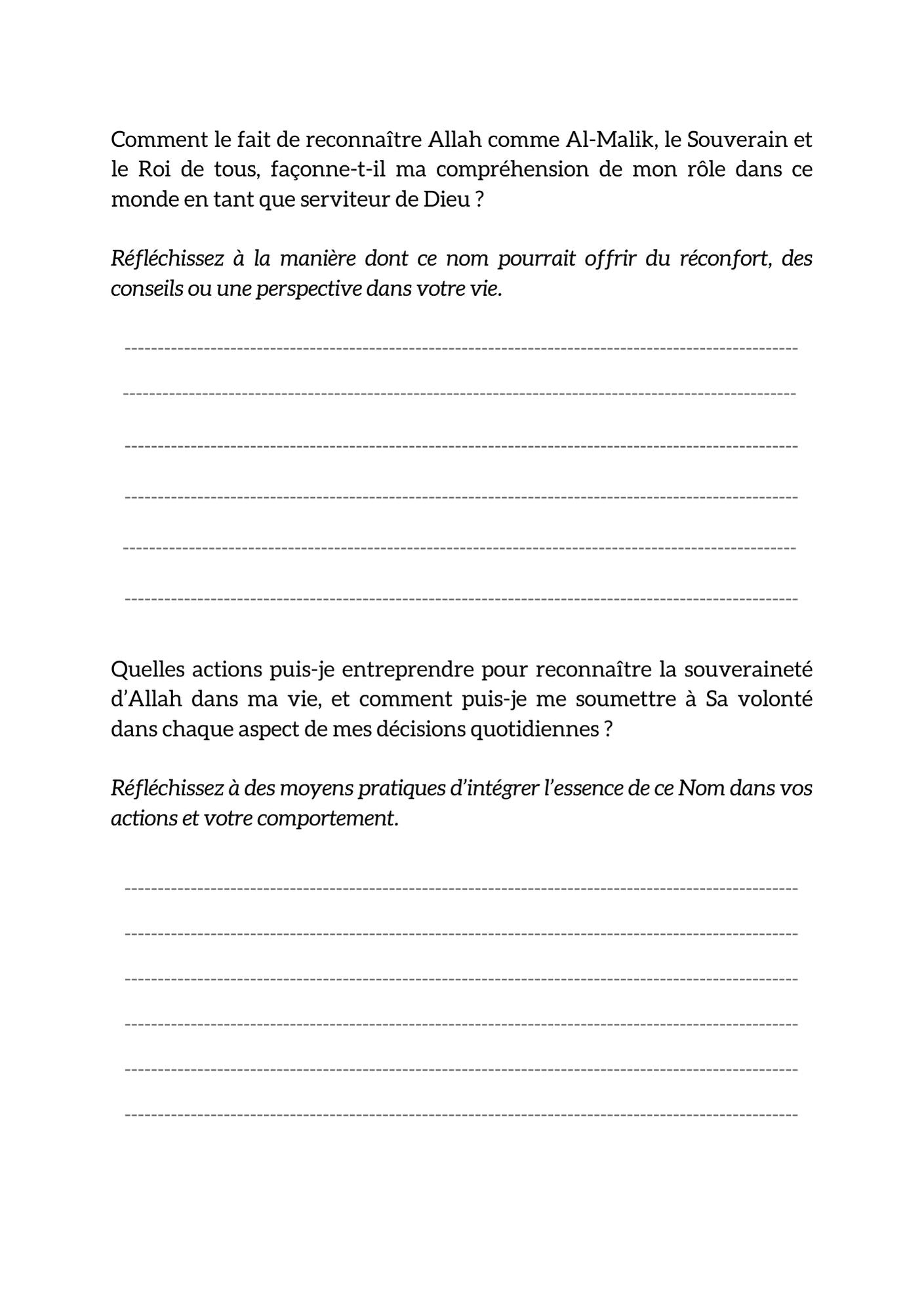 Each section of the book focuses on one of Allah’s names, providing insightful reflections, practical explanations, and thought-provoking questions designed to inspire deeper contemplation.
